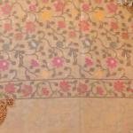 The highlight of this drape is the Meenakari cutwork, where multicolored floral and paisley motifs are meticulously woven into the fabric using the Jamdani technique, and then highlighted with detailed cutwork that lends a three-dimensional charm. The soft cream base enhances the vibrancy of the Meenakari detailing.