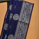 Drape yourself in quiet sophistication with this stunning Navy Blue Spun Silk Banarasi Saree. With its soft texture and effortless fall, it brings together traditional elegance and modern comfort.