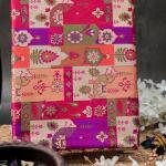 The rich rani (deep pink-magenta) base is beautifully contrasted by intricate floral and paisley motifs in four distinct hues—woven using the age-old Meenakari technique. Delicate yet striking, the multicolored design is highlighted by opulent gold zari work on the borders and pallu, giving the saree a festive and regal appeal.