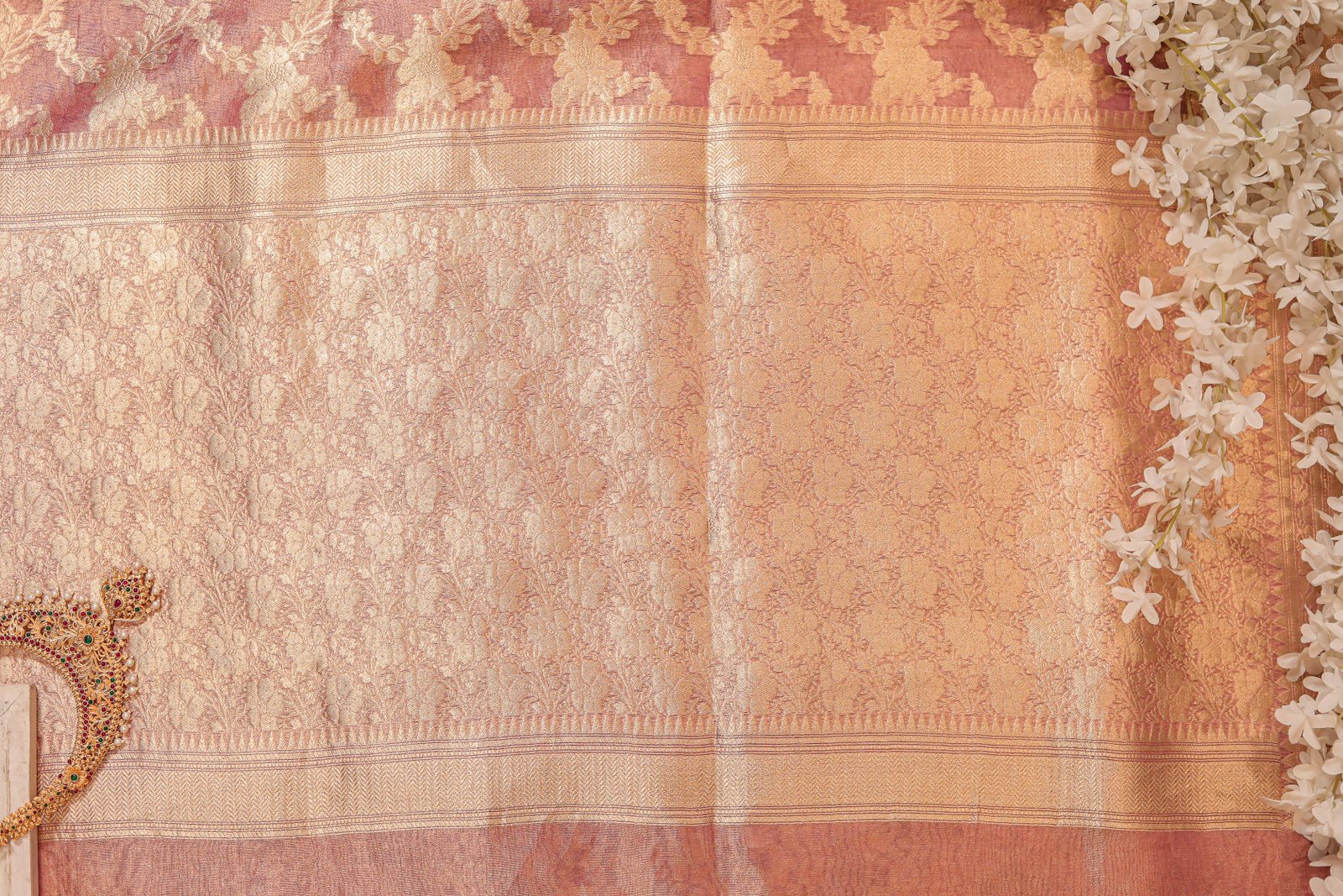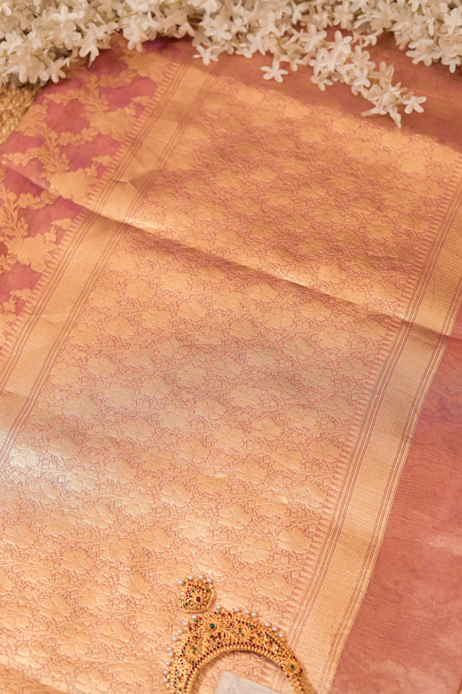 - Fabric: Pure Kora Silk Tissue (Banarasi)