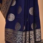 Midnight Grace – Navy Blue Spun Silk Saree