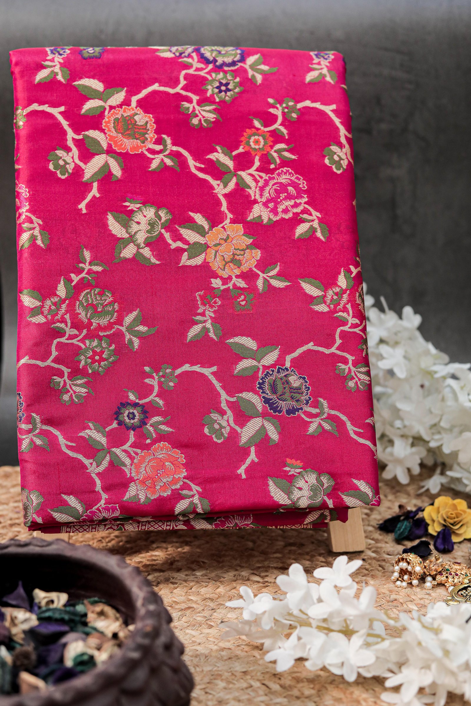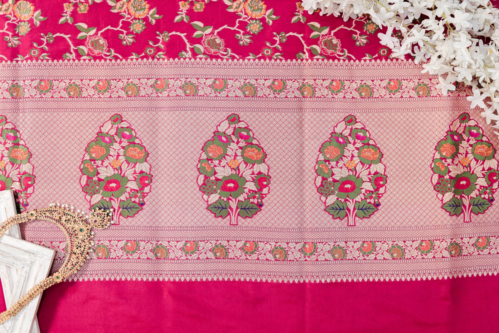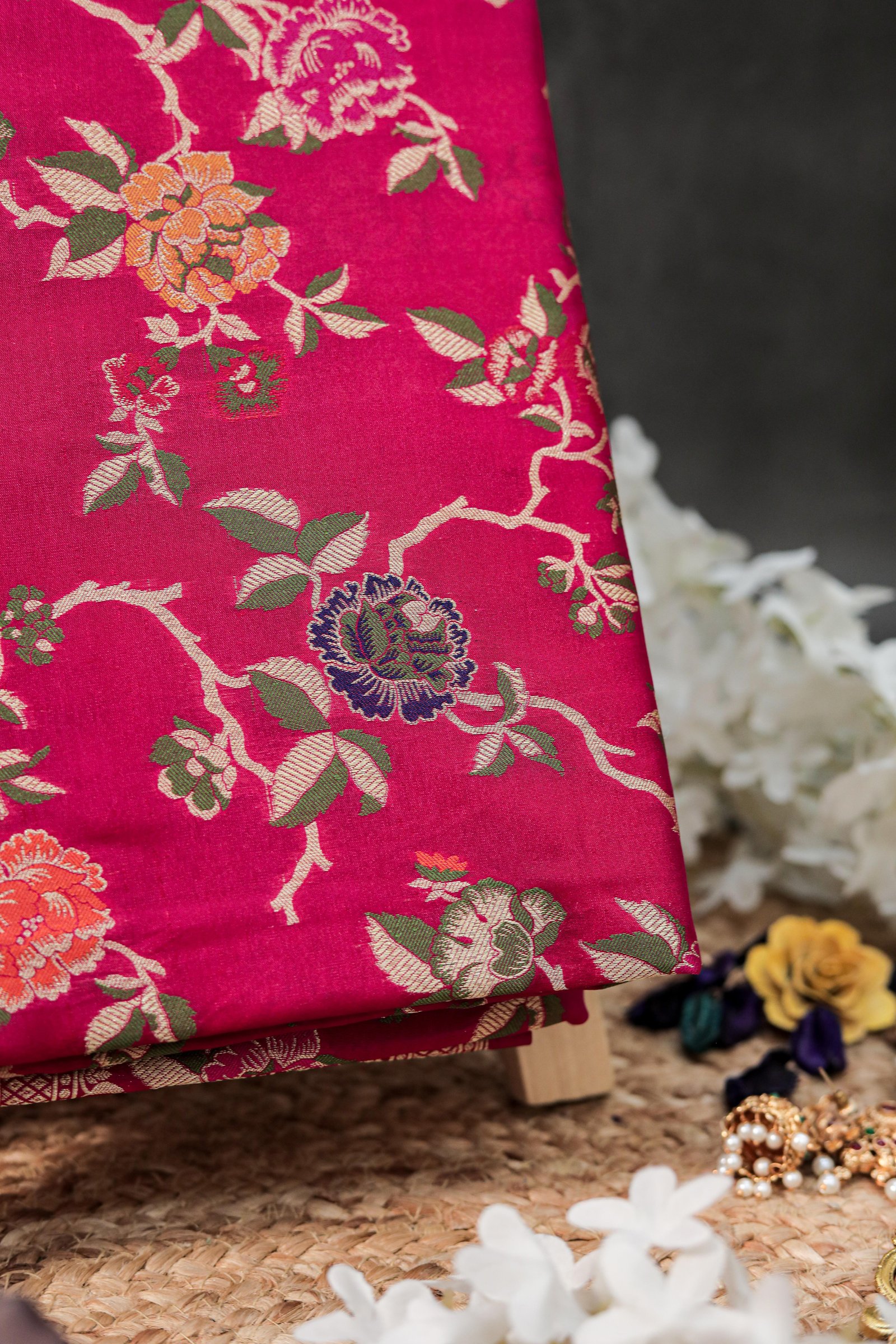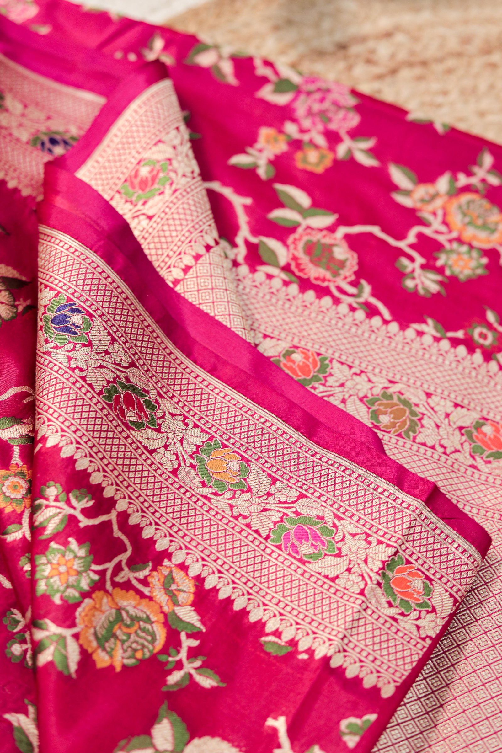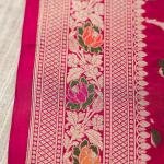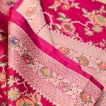 - Technique: Handwoven with Meenakari and Zari
